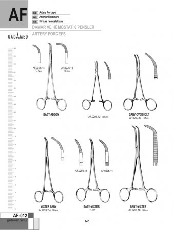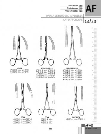 AF.0010.03 8681091018888 Buldog klemp düz, Dieffenbach model 3.5 cm AF.0010.05 8681091018895 Buldog klemp düz, Dieffenbach model 5.5 cm AF.0010.06 8681091018901 Buldog klemp düz, Dieffenbach model 6.0 cm AF.0011.03 8681091018918 Buldog klemp eğri, Dieffenbach model 3.5 cm AF.0011.05 8681091018925 Buldog klemp eğri, Dieffenbach model 5.5 cm AF.0011.06 8681091018932 Buldog klemp eğri, Dieffenbach model 6.0 cm AF.0016.05 8681091018949 Buldog klemp düz, Johns-Hopkins model 5.0 cm AF.0016.06 8681091018956 Buldog klemp düz, Johns-Hopkins model 6.5 cm AF.0016.07 8681091018963 Buldog klemp düz, Johns-Hopkins model 7.5 cm AF.0017.05 8681091018970 Buldog klemp eğri, Johns-Hopkins model 5.0 cm AF.0017.06 8681091018987 Buldog klemp eğri, Johns-Hopkins model 5.0 cm AF.0017.07 8681091018994 Buldog klemp eğri, Johns-Hopkins model 5.0 cm AF.0020.08 8681091019007 Buldog klemp düz, diethrich model 8mm, 5.0 cm AF.0020.12 8681091019014 Buldog klemp düz, diethrich model 12mm, 5.0 cm AF.0020.20 8681091019021 Buldog klemp düz, diethrich model 20mm, 6.0 cm AF.0021.08 8681091019038 Buldog klemp açılı, diethrich model 8mm, 5.0 cm AF.0021.12 8681091019045 Buldog klemp açılı, diethrich model 12mm, 5.0 cm AF.0021.20 8681091019052 Buldog klemp açılı, diethrich model 20mm, 6.0 cm AF.0026.14 8681091019069 Vessel klip W/lock 14 cm AF.0028.18 8681091019076 Vessel klip W/lock 18 cm AF.0030.10 8681091019083 Hemostatik klemp düz, Hartmann model 10.0 cm AF.0031.10 8681091019090 Hemostatik klemp eğri, Hartmann model 10.0 cm AF.0032.10 8681091019106 Hemostatik klemp düz, Hartmann model dişli 1x2 10.0 cm AF.0033.10 8681091019113 Hemostatik klemp eğri, Hartmann model dişli 1x2 10.0 cm AF.0040.08 8681091019120 Hemostatik klemp düz, Carrel model 8.5 cm AF.0044.08 8681091019137 Hemostatik klemp düz, Terrier model dişli 1x2 8.5 cm AF.0048.09 8681091019144 Hemostatik klemp düz, Terrier model dişli 1x2 9.0 cm AF.0049.09 8681091019151 Hemostatik klemp eğri, Terrier model dişli 1x2 9.0 cm AF.0060.12 8681091019168 Hemostatik klemp düz, Halsted-Mosquito model 12.5 cm AF.0060.14 8681091019175 Hemostatik klemp düz, Halsted-Mosquito model 14.0 cm AF.0061.12 8681091019182 Hemostatik klemp eğri, Halsted-Mosquito model 12.5 cm AF.0061.14 8681091019199 Hemostatik klemp eğri, Halsted-Mosquito model 14.0 cm AF.0062.12 8681091019205 Hemostatik klemp düz, Halsted-Mosquito model dişli 1x2 12.5 cm AF.0062.14 8681091019212 Hemostatik klemp düz, Halsted-Mosquito model dişli 1x2 14.0 cm AF.0063.12 8681091019229 Hemostatik klemp eğri, Halsted-Mosquito model dişli 1x2 12.5 cm AF.0063.14 8681091019236 Hemostatik klemp eğri, Halsted-Mosquito model dişli 1x2 14.0 cm AF.0070.10 8681091019243 Hemostatik klemp düz, Mikro Mosquito model 10.0 cm AF.0070.12 8681091019250 Hemostatik klemp düz, Mikro Mosquito model 12.0 cm AF.0070.14 8681091019267 Hemostatik klemp düz, Mikro Mosquito model 14.0 cm AF.0071.10 8681091019274 Hemostatik klemp eğri, Mikro Mosquito model 10.0 cm AF.0071.12 8681091019281 Hemostatik klemp eğri, Mikro Mosquito model 12.0 cm AF.0071.14 8681091019298 Hemostatik klemp eğri, Mikro Mosquito model 14.0 cm AF.0072.10 8681091019304 Hemostatik klemp düz, Mikro Mosquito model dişli 1x2 10.0 cm AF.0072.12 8681091019311 Hemostatik klemp düz, Mikro Mosquito model dişli 1x2 12.0 cm AF.0072.14 8681091019328 Hemostatik klemp düz, Mikro Mosquito model dişli 1x2 14.0 cm AF.0073.10 8681091019335 Hemostatik klemp eğri, Mikro Mosquito model dişli 1x2 10.0 cm AF.0073.12 8681091019342 Hemostatik klemp eğri, Mikro Mosquito model dişli 1x2 12.0 cm AF.0073.14 8681091019359 Hemostatik klemp eğri, Mikro Mosquito model dişli 1x2 14.0 cm AF.0080.16 8681091019366 Hemostatik klemp düz, Halsted-Mosquito model 16.0 cm AF.0080.18 8681091019373 Hemostatik klemp düz, Halsted-Mosquito model 18.0 cm AF.0080.21 8681091019380 Hemostatik klemp düz, Halsted-Mosquito model 21.0 cm AF.0081.16 8681091019397 Hemostatik klemp eğri, Halsted-Mosquito model 16.0 cm AF.0081.18 8681091019403 Hemostatik klemp eğri, Halsted-Mosquito model 18.0 cm AF.0081.21 8681091019410 Hemostatik klemp eğri, Halsted-Mosquito model 21.0 cm AF.0082.16 8681091019427 Hemostatik klemp düz, Halsted-Mosquito model dişli 1x2 16.0 cm AF.0082.18 8681091019434 Hemostatik klemp düz, Halsted-Mosquito model dişli 1x2 18.0 cm AF.0082.21 8681091019441 Hemostatik klemp düz, Halsted-Mosquito model dişli 1x2 21.0 cm AF.0083.16 8681091019458 Hemostatik klemp eğri, Halsted-Mosquito model dişli 1x2 16.0 cm AF.0083.18 8681091019465 Hemostatik klemp eğri, Halsted-Mosquito model dişli 1x2 18.0 cm AF.0083.21 8681091019472 Hemostatik klemp eğri, Halsted-Mosquito model dişli 1x2 21.0 cm AF.0090.14 8681091019489 Hemostatik klemp düz, Kelly model 14.0 cm AF.0091.14 8681091019496 Hemostatik klemp eğri, Kelly model 14.0 cm AF.0094.14 8681091019502 Hemostatik klemp düz, Crile model 14.0 cm AF.0095.14 8681091019519 Hemostatik klemp eğri, Crile model 14.0 cm AF.0096.14 8681091019526 Hemostatik klemp düz, Crile model dişli 1x2 14.0 cm AF.0097.14 8681091019533 Hemostatik klemp eğri, Crile model dişli 1x2 14.0 cm AF.0100.16 8681091019540 Hemostatik klemp düz, Rankin-Kelly model 16.0 cm AF.0101.16 8681091019557 Hemostatik klemp eğri, Rankin-Kelly model 16.0 cm AF.0104.16 8681091019564 Hemostatik klemp düz, Rankin-Crile model 16.0 cm AF.0105.16 8681091019571 Hemostatik klemp eğri, Rankin-Crile model 16.0 cm AF.0106.16 8681091019588 Hemostatik klemp düz, Crile-Rankin model 16.0 cm AF.0107.16 8681091019595 Hemostatik klemp eğri, Crile-Rankin model 16.0 cm AF.0110.14 8681091019601 Hemostatik klemp düz, Crile-Delicate model 14.0 cm AF.0111.14 8681091019618 Hemostatik klemp eğri, Crile-Delicate model 14.0 cm AF.0116.14 8681091019625 Hemostatik klemp düz, Crile-Delicate model dişli 1x2 14.0 cm AF.0117.14 8681091019632 Hemostatik klemp eğri, Crile-Delicate model dişli 1x2 14.0 cm AF.0120.14 8681091019649 Hemostatik Klemp düz, Coller-Crile model 14.0 cm 
