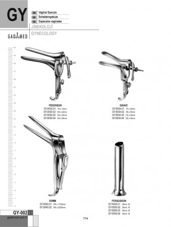 GY.0010.01 8681091084463 CUSCO VAJİNAL SPEKULUM ORTA ÇEVİRME 75X17MM BAKİRE GY.0010.02 8681091084470 CUSCO VAJİNAL SPEKULUM ORTA ÇEVİRME 75X32MM GY.0010.03 8681091084487 CUSCO VAJİNAL SPEKULUM ORTA ÇEVİRME 85X35MM GY.0010.04 8681091084494 CUSCO VAJİNAL SPEKULUM ORTA ÇEVİRME 100X35MM GY.0014.01 8681091084500 CUSCO VAJİNAL SPEKULUM 75X17MM BAKİRE GY.0014.02 8681091084517 CUSCO VAJİNAL SPEKULUM 75X32MM KÜÇÜK GY.0014.03 8681091084524 CUSCO VAJİNAL SPEKULUM ORT/ÇEV 80X32MM GY.0014.04 8681090900399 CUSCO VAJİNAL SPEKULUM ORT/ÇEV 85X35MM GY.0014.05 8681091084531 CUSCO VAJİNAL SPEKULUM 100X35MM BÜYÜK GY.0014.06 8681091084548 CUSCO VAJİNAL SPEKULUM 115X37MM ÇOK BÜYÜK GY.0020.01 8681091084555 CUSCO SPEKULUM LAT. ÇEVİRME DÜZ UÇ 75X32MM GY.0020.02 8681091084562 CUSCO SPEKULUM LET. ÇEVİRME DÜZ UÇ 85X35MM GY.0020.03 8681091084579 CUSCO SPEKULUM LAT. ÇEVİRME DÜZ UÇ 100X35MM GY.0020.04 8681091084586 CUSCO VAJİNAL SPEKULUMLAR 85X35MM, F.O.L. TAŞIYICILI GY.0020.05 8681091084593 CUSCO VAJİNAL SPEKULUMLAR (SADECE SOĞUK HAFİF TAŞIYICI) GY.0022.01 8681091084609 CUSCO SPEKULUM LAT. ÇEVİRME DÜZ UÇ 75X17MM GY.0022.02 8681091084616 CUSCO SPEKULUM LAT. ÇEVİRME YUVARLAK UÇ 85X17MM GY.0022.03 8681091084623 CUSCO SPEKULUM LAT. ÇEVİRME DÜZ UÇ 100X17MM GY.0024.01 8681091084630 CUSCO VAJİNAL SPEKULUM İSVİÇRE 90X23MM GY.0024.02 8681091084647 CUSCO VAJİNAL SPEKULUM İSVİÇRE 100X25MM GY.0024.03 8681091084654 CUSCO VAJİNAL SPEKULUM İSVİÇRE 110X27MM GY.0024.04 8681091084661 CUSCO VAJİNAL SPEKULUM İSVİÇRE 115X27MM GY.0026.01 8681091084678 CUSCO VAJİNAL SPEKULUM JAPON MODELİ "LL" GY.0026.02 8681091084685 CUSCO VAJİNAL SPEKULUM JAPON MODELİ "L" GY.0026.03 8681091084692 CUSCO VAJİNAL SPEKULUM JAPON MODELİ "M" GY.0026.04 8681091084708 CUSCO VAJİNAL SPEKULUM JAPON MODELİ "S" GY.0026.05 8681091084715 CUSCO VAJİNAL SPEKULUM JAPON MODELİ "SS" GY.0026.06 8681091084722 CUSCO VAJİNAL SPEKULUM JAPON MODELİ "SSS" GY.0030.01 8681091084739 PEDERSON VAJİNAL SPEKULUM 75X13MM GY.0030.02 8681091084746 PEDERSON VAJİNAL SPEKULUM 100X22MM GY.0030.03 8681091084753 PEDERSON VAJİNAL SPEKULUM 120X25MM GY.0030.04 8681091084760 PEDERSON VAJİNAL SPEKULUM 130X25MM GY.0034.01 8681091084777 GRAVE VAJİNAL SPEKULUM 75X20MM GY.0034.02 8681091084784 GRAVE VAJİNAL SPEKULUM 95X35MM GY.0034.03 8681091084791 GRAVE VAJİNAL SPEKULUM 115X35MM GY.0034.04 8681091084807 GRAVE VAJİNAL SPEKULUM 125X35MM GY.0040.01 8681091084814 SEMM VAJİNAL SPEKULUM 100X17/20MM GY.0040.02 8681091084821 SEMM VAJİNAL SPEKULUM 100X25/30MM GY.0050.01 8681091084838 FERGUSSON VAJİNAL SPEKULUMLAR 25MM ŞEK.1 GY.0050.02 8681091084845 FERGUSSON VAJİNAL SPEKULUMLAR 30MM ŞEK.2 GY.0050.03 8681091084852 FERGUSSON VAJİNAL SPEKULUMLAR 35MM ŞEK.3 GY.0050.04 8681091084869 FERGUSSON VAJİNAL SPEKULUMLAR 40MM ŞEK.4 GY.0054.01 8681091084876 COLLIN VAJİNAL SPEKULUM ÇOCUK C/P 65X10MM GY.0060.01 8681091084883 COLLIN VAJİNAL SPEKULUM 65X20MM GY.0064.01 8681091084890 COLLIN LANDAU VAJİNAL SPEKULUMLAR 100X35MM GY.0066.01 8681091084906 COLLIN VAJİNAL SPEKULUM 85X30MM GY.0066.02 8681091084913 COLLIN VAJİNAL SPEKULUM 100X35MM GY.0066.03 8681091084920 COLLIN VAJİNAL SPEKULUM 110X40MM GY.0066.04 8681091084937 CUSCO V/ SPEKULUMLAR 100X35MM, F.O.L. TAŞIYICILI GY.0066.05 8681091084944 FİBER OPTİK HAFİF TAŞIYICI COLLIN SPEKULUMLAR İÇİN GY.0068.01 8681091084951 TRELAT VAJİNAL SPEKULUM 85X33MM GY.0068.02 8681091084968 TRELAT VAJİNAL SPEKULUM 95X35MM GY.0068.03 8681091084975 TRELAT VAJİNAL SPEKULUM 115X43MM GY.0070.01 8681091084982 SAKURAI VAJİNAL SPEKULUM "LL" GY.0070.02 8681091084999 SAKURAI VAJİNAL SPEKULUM "L" GY.0070.03 8681091085002 SAKURAI VAJİNAL SPEKULUM "M" GY.0070.04 8681091085019 SAKURAI VAJİNAL SPEKULUM "S" GY.0080.01 8681091085026 JACKSON VAJİNAL SPEKULUM 75X35MM GY.0080.02 8681091085033 JACKSON VAJİNAL SPEKULUM 90X35MM GY.0080.03 8681091085040 JACKSON VAJİNAL SPEKULUM 100X35MM GY.0080.04 8681091085057 JACKSON VAJİNAL SPEKULUM 75X38MM GY.0080.05 8681091085064 JACKSON VAJİNAL SPEKULUM 90X38MM GY.0080.06 8681091085071 JACKSON VAJİNAL SPEKULUM 100X38MM GY.0084.01 8681091085088 EASTMANN VAJİNAL SPEKULUM 75X35MM GY.0084.02 8681091085095 EASTMANN VAJİNAL SPEKULUM 90X35MM GY.0084.03 8681091085101 EASTMANN VAJİNAL SPEKULUM 100X35MM GY.0084.04 8681091085118 EASTMANN VAJİNAL SPEKULUM 75X40MM GY.0084.05 8681091085125 EASTMANN VAJİNAL SPEKULUM 90X40MM GY.0084.06 8681091085132 EASTMANN VAJİNAL SPEKULUM 100X40MM GY.0090.01 8681091085149 SIMS VAJİNAL SPEKULUM D/UÇLU KÜÇÜK ŞEK.1 GY.0090.02 8681091085156 SIMS VAJİNAL SPEKULUM D/UÇLU MEDİCONİUM ŞEK.2 GY.0090.03 8681091085163 SIMS VAJİNAL SPEKULUM D/UÇLU BÜYÜK ŞEK.3 GY.0090.04 8681091085170 SIMS VAJİNAL SPEKULUM D/E XL,100X35/120X40MM GY.0090.05 8681091085187 SIMS VAJİNAL SPEKULUM D/E XXL,100X35/120X40MM GY.0094.01 8681091085194 SIMS VAJİNAL SPEKULUM SAPLI 60X25+30MM GY.0094.02 8681091085200 SIMS VAJİNAL SPEKULUM SAPLI 70X30+35MM GY.0094.03 8681091085217 SIMS VAJİNAL SPEKULUM SAPLI 80X35+40MM GY.0100.18 8681091085224 BRAUN VAJİNAL EKARTÖR 56X13MM 18CM GY.0102.18 8681091085231 BRAUN VAJİNAL EKARTÖR 60X10MM 18CM GY.0110.19 8681091085248 ULRICH VAJİNAL EKARTÖR 80X20MM 19.5CM GY.0112.19 8681091085255 VAJİNAL EKARTÖR 85X17MM 19CM GY.0120.01 8681091085262 KRISTELLER VAJİNAL SPEKULUM 105X18MM GY.0120.02 8681091085279 KRISTELLER VAJİNAL SPEKULUM 105X21MM GY.0122.01 8681091085286 KRISTELLER VAJİNAL EKARTÖR 110X14MM GY.0122.02 8681091085293 KRISTELLER VAJİNAL EKARTÖR 115X17MM GY.0124.00 8681091085309 KRISTELLER VAJİNAL SPEKULUM 105X18MM SET GY.0126.00 8681091085316 KRISTELLER VAJİNAL SPEKULUM 105X21MM SET GY.0130.01 8681091085323 KRISTELLER VAJİNAL SPEKULUM 70X27MM GY.0130.02 8681091085330 KRISTELLER VAJİNAL SPEKULUM 75X30MM GY.0130.03 8681091085347 KRISTELLER VAJİNAL SPEKULUM 90X36MM GY.0132.01 8681091085354 KRISTELLER VAJİNAL EKARTÖR 75X23MM GY.0132.02 8681091085361 KRISTELLER VAJİNAL EKARTÖR 80X26MM GY.0132.03 8