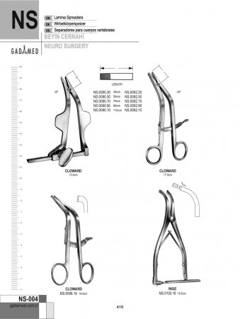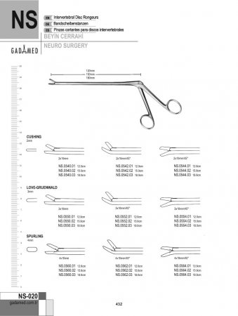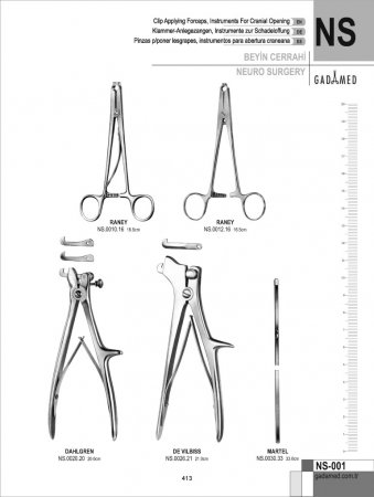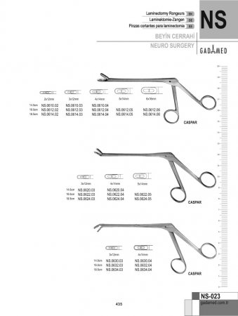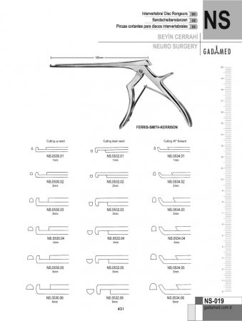 NS.0010.16 8681091050857 RANEY KLİPS UYGULAMA SÖKME FORSEPSİ 16.5CM NS.0012.16 8681091050864 RANEY KLİPS UYGULAMA SÖKME FORSEPSİ 16.5CM NS.0020.20 8681091050871 DAHLGREN KRANİYEL RONGÖR FORSEPSİ 20CM, 2 KANCALI NS.0026.21 8681091050888 DE VİLBİSS KRANİYEL RONGÖR 21CM, BİR ADET BÜYÜK NS.0030.33 8681091050895 DE MARTEL GİGLİ TESTERE KILAVUZU/KONDÜKTÖR 33CM NS.0040.00 8681091050901 GİGLİ TESTERE SAPI (ÇİFT) NS.0042.30 8681091050918 OLIVECRONA GIGLI TESTERE TELİ X2 BURGU 30CM NS.0042.40 8681091050925 OLIVECRONA GIGLI TESTERE TELİ X2 BURGU 40CM NS.0042.50 8681091050932 OLIVECRONA GIGLI TESTERE TELİ X2 BURGU 50CM NS.0042.60 8681091050949 OLIVECRONA GIGLI TESTERE TELİ X2 BURGU 60CM NS.0042.70 8681091050956 OLIVECRONA GIGLI TESTERE TELİ X2 BURGU 70CM NS.0043.30 8681091050963 OLIVECRONA GIGLI TESTERE TELİ X3 BURGU 30CM NS.0043.40 8681091050970 OLIVECRONA GIGLI TESTERE TELİ X3 BURGU 40CM NS.0043.50 8681091050987 OLIVECRONA GIGLI TESTERE TELİ X3 BURGU 50CM NS.0043.60 8681091050994 OLIVECRONA GIGLI TESTERE TELİ X3 BURGU 60CM NS.0043.70 8681091051007 OLIVECRONA GIGLI TESTERE TELİ X3 BURGU 70CM NS.0044.30 8681091051014 OLIVECRONA GIGLI TESTERE TELİ X4 BURGU 30CM NS.0044.40 8681091051021 OLIVECRONA GIGLI TESTERE TELİ X4 BURGU 40CM NS.0044.50 8681091051038 OLIVECRONA GIGLI TESTERE TELİ X4 BURGU 50CM NS.0044.60 8681091051045 OLIVECRONA GIGLI TESTERE TELİ X4 BURGU 60CM NS.0044.70 8681091051052 OLIVECRONA GIGLI TESTERE TELİ X4 BURGU 70CM NS.0050.01 8681091051069 CRUTCHFIELD TRAKSİYON TUTUCU KÜÇÜK NS.0050.02 8681091051076 CRUTCHFIELD TRAKSİYON TUTUCU BÜYÜK NS.0050.04 8681091051083 CRUTCHFIELD MATKAP UCU 3.5MM NS.0050.05 8681091051090 CRUTCHFIELD MATKAP UCU 5.0MM NS.0054.00 8681091051106 SERVİKAL TRAKSİYON TUTUCU BÜYÜK NS.0054.10 8681091051113 YALNIZCA TRAKSİYON TUTUCULARI İÇİN YEDEK PİN NS.0060.14 8681091051120 Olivecrona - Toennis Klips Forsepsi 14cm NS.0070.15 8681091051137 Mckenzie Klips Uygulama Forsepsi 15cm NS.0070.19 8681091051144 Mckenzie Klips Uygulama Forsepsi 19cm NS.0072.15 8681091051151 Mckenzie Klips Uygulama Forsepsi 15cm NS.0072.19 8681091051168 Mckenzie Klips Uygulama Forsepsi 19cm NS.0080.23 8681091051175 Smithwick Klips Uygulama Forsepsi 23cm NS.0080.26 8681091051182 Smithwick Klips Uygulama Forsepsi 26cm NS.0082.23 8681091051199 Sweet Klips Uygulama Forsepsi 23cm NS.0082.25 8681091051205 Sweet Klips Uygulama Forsepsi 26cm NS.0090.10 8681091051212 Cloward Laminia Ayırıcı, vida ile 110mm, 15cm NS.0090.30 8681091051229 Cloward Laminia Ayırıcı, vida ile 30mm, 15cm NS.0090.50 8681091051236 Cloward Laminia Ayırıcı, vida ile 50mm, 15cm NS.0090.70 8681091051243 Cloward Laminia Ayırıcı, vida ile 70mm, 15cm NS.0090.90 8681091051250 Cloward Laminia Ayırıcı, vida ile 90mm, 15cm NS.0092.10 8681091051267 Cloward Laminia Ayırıcı kam/rat. 110mm, 17cm NS.0092.30 8681091051274 Cloward Laminia Ayırıcı kam/rat. 30mm, 17cm NS.0092.50 8681091051281 Cloward Laminia Ayırıcı kam/rat. 50mm, 17cm NS.0092.70 8681091051298 Cloward Laminia Ayırıcı kam/rat. 70mm, 17cm NS.0092.90 8681091051304 Cloward Laminia Ayırıcı kam/rat. 90mm, 17cm NS.0096.16 8681091051311 Cloward Lamina Ayırıcı 16cm NS.0100.16 8681091051328 Inge Lamina Ayırıcı 17cm NS.0102.24 8681091051335 Inge Laminektomi Ayırıcı, 50mm, 24cm NS.0104.27 8681091051342 Inge Lamina Ayırıcı, 12mm uç, 27cm NS.0106.24 8681091051359 Inge Laminektomi Ayırıcı çene 10x20mm, 24cm NS.0108.24 8681091051366 Inge Laminektomi Ayırıcı çene 15x20mm, 24cm NS.0116.28 8681091051373 Inge Laminektomi Ayırıcı çene 22X15mm, 24cm NS.0120.19 8681091051380 LOVE SİNİR KÖKÜ EKARTÖRÜ DÜZ 19CM NS.0122.19 8681091051397 LOVE SİNİR KÖKÜ EKARTÖRÜ DÜZ 19CM 45 Ø AÇILI NS.0124.19 8681091051403 LOVE SİNİR KÖKÜ EKARTÖRÜ DÜZ 19CM 90 Ø AÇILI NS.0130.20 8681091051410 SCOVILLE SİNİR KÖKÜ EKARTÖRÜ AÇILI 7MM, 20CM NS.0134.21 8681091051427 MARTIN SİNİR KÖKÜ EKARTÖRÜ AÇILI 21CM NS.0140.21 8681091051434 KASPAR LOVE SİNİR EKARTÖRÜ 21.00CM NS.0144.06 8681091051441 CASPAR SİNİR KÖKÜ EKARTÖRÜ AÇILI 6MM, 24CM NS.0144.08 8681091051458 CASPAR SİNİR KÖKÜ EKARTÖRÜ AÇILI 8MM, 24CM NS.0144.10 8681091051465 CASPAR SİNİR KÖKÜ EKARTÖRÜ AÇILI 10MM, 24CM NS.0150.24 8681091051472 HOLSHER SİNİR KÖKÜ EKARTÖRÜ KAVİSLİ 7MM, 24CM NS.0154.23 8681091051489 SCOVILLE SİNİR KÖKÜ EKARTÖRÜ DÜZ 8MM, 23CM NS.0160.14 8681091051496 CUSHING DURA KANCALI KESKİN UÇ Í 2MM, 14CM NS.0164.13 8681091051502 FRAZIER KANCALI TEK KESKİN 13CM NS.0164.18 8681091051519 FRAZIER KANCALI TEK KESKİN 18CM NS.0166.13 8681091051526 FRAZIER DURA KANCALI KÜNT 13CM NS.0166.18 8681091051533 FRAZIER DURA KANCALI KÜNT 18CM NS.0170.13 8681091051540 LAHEY DURA KANCA 13CM NS.0174.15 8681091051557 TOENNIS DURA KANCA 15CM NS.0180.16 8681091051564 GRAHAM SİNİR KANCASI KÜNT 16.5CM NS.0184.18 8681091051571 SACHS SİNİR KANCASI 18.5CM NS.0190.20 8681091051588 DANDY SİNİR KANCASI 20CM NS.0192.20 8681091051595 DANDY SİNİR KANCASI 20CM NS.0194.20 8681091051601 DANDY SİNİR KANCASI 20CM NS.0200.22 8681091051618 HOEN DURA KANCALI KÜNT 22CM NS.0204.20 8681091051625 ADSON SİNİR KANCASI KÜNT 20CM NS.0206.20 8681091051632 ADSON SİNİR KANCASI KESKİN 20CM NS.0210.30 8681091051649 SCOVILLE AÇILI KANCA ve DİSSEKTÖR D/E 30CM NS.0212.30 8681091051656 SCOVILLE KAVİSLİ KANCA ve DİSSEKTÖR D/E 30CM NS.0216.29 8681091051663 SMITHWICJ SİNİR KANCASI KÜÇÜK 29CM NS.0220.19 8681091051670 CUSHING SİNİR KANCASI KÜÇÜK 19CM NS.0220.28 8681091051687 CUSHING SİNİR KANCASI KÜÇÜK 28CM NS.0222.19 8681091051694 CUSHING SİNİR KANCASI BÜYÜK 19CM NS.0222.28 8681091051700 CUSHING SİNİR KANCASI BÜYÜK 28CM NS.0226.17 8681091051717 SMITHWICK SİNİR KANCASI 17CM NS.0226.21 8681091051724 SMITHWICK SİNİR KANCASI 21CM NS.0230.24 8681091051731 DAVIS DURA DİSSEKTÖR ÇİFTE 24CM NS.0234.18 8681091051748 OLIVECRONA DURA DİSSEKTÖR D/E 18CM NS.0234.24 8681091051755 OLIVECRONA DURA DİSSE