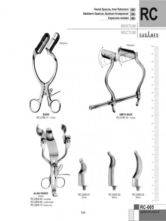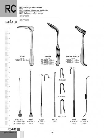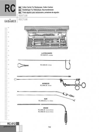 RC.0010.15 8681091080151 SIMS REKTAL SPEKULUM 15CM RC.0012.15 8681091080168 Sims Rektal Spekulum 15cm (Bodenhammer) RC.0020.19 8681091080175 Mathieu Rektal Spekulum 90x15mm 19.5cm RC.0030.15 8681091080182 Sims Rektal Spekulum 15cm RC.0040.06 8681091080199 Schulze Bergmann Rektal Spek. 23x60mm, 22cm RC.0040.08 8681091080205 Schulze Bergmann Rektal Spek. 23x80mm, 22cm RC.0040.12 8681091080212 Schulze Bergmann Rektal Spek. 23x125mm, 22cm RC.0040.15 8681091080229 Schulze Bergmann Rektal Spek. 23x150mm, 22cm RC.0050.21 8681091080236 Pratt Rektal Spekulum 21.5cm RC.0060.00 8681091080243 Ricord Rektal Spekulum RC.0070.01 8681091080250 Kelly Proktoskop 21x50mm RC.0070.02 8681091080267 Kelly Proktoskop 27x50mm RC.0074.01 8681091080274 Kelly Proktoskop 64x25mm RC.0074.02 8681091080281 Kelly Proktoskop 22x35mm çap RC.0080.00 8681091080298 Graeme Anderson Proktoskop 24x64mm çap RC.0090.01 8681091080304 Kelly Proktoskop 64x24mm çap RC.0090.02 8681091080311 Gabriel Proktoskop 49x19mm çap RC.0100.01 8681091080328 Kelly Proktoskop 22x50mm RC.0100.02 8681091080335 Kelly Proktoskop 22x100mm RC.0100.03 8681091080342 Kelly Proktoskop 22x140mm RC.0100.04 8681091080359 Kelly Sfinkteroskop 22x200mm RC.0110.15 8681091080366 Ives Fansler Proktoskop 22mm RC.0120.01 8681091080373 Hirschmann Anoskop 16x65mm RC.0120.02 8681091080380 Hirschmann Anoskop 19x65mm RC.0120.03 8681091080397 Hirschmann Anoskop 22x65mm RC.0130.01 8681091080403 Kelly Proktoskop 22x50mm RC.0130.02 8681091080410 Kelly Proktoskop 22x100mm RC.0130.03 8681091080427 Kelly Proktoskop 22x140mm RC.0140.01 8681091080434 Mod.Martin Anaskop 22x50mm RC.0140.02 8681091080441 Mod.Martin Anaskop 22x75mm RC.0140.03 8681091080458 Mod.Martin Anaskop 22x100mm RC.0150.01 8681091080465 Newmann Anaskop 16x63mm RC.0150.02 8681091080472 Newmann Anaskop 19x63mm RC.0150.03 8681091080489 Newmann Anaskop 23x63mm RC.0160.01 8681091080496 Bensaude Anaskop 19x70mm RC.0160.02 8681091080502 Bensaude Anaskop 22x70mm RC.0170.00 8681091080519 Naunton Morgan Proktoskop Işıklı 22mm RC.0180.17 8681091080526 Barr Rektal Ekartör 70x22mm 17cm RC.0190.15 8681091080533 Smith Buie Rektal Ekartör 75x23mm 15cm RC.0200.00 8681091080540 ALAN PARKS Ekartör komple, 5 bıçaklı RC.0200.01 8681091080557 Pair of ALAN PARKS Rektal Bıçak 22x72mm RC.0200.02 8681091080564 ALAN PARKS Anastomoz Bıçağı Çifti 22x90mm RC.0200.03 8681091080571 ALAN PARKS Sfinkter Bıçağı Çifti 22x94mm RC.0200.04 8681091080588 Sadece ALAN PARKS Ekartör için Orta Bıçak RC.0200.13 8681091080595 Modifiye ALAN PARKS Ekartör, ortasız RC.0210.22 8681091080601 Czerny Rektal Spekulum 25x115mm, 22cm RC.0220.01 8681091080618 Sawyer Rektal Ekartör 65x22mm, 23cm RC.0220.02 8681091080625 Sawyer Rektal Ekartör 75x28mm, 23cm RC.0220.03 8681091080632 Sawyer Rektal Ekartör 90x38mm, 23cm RC.0230.01 8681091080649 Fergusson-Moon Rektal Ekartör 65x22mm, 21cm RC.0230.02 8681091080656 Fergusson-Moon Rektal Ekartör 75x28mm, 21cm RC.0240.13 8681091080663 Buie Fistül Probu hafif model 13.5cm RC.0242.13 8681091080670 Buie Fistül Probu ağır model 13.5cm RC.0250.18 8681091080687 Larry Rektal Prob, Direktörlü 18cm RC.0260.17 8681091080694 Roser Kript Kancası 17cm RC.0270.01 8681091080700 Pratt Kistik Kanca Şek.1 RC.0270.02 8681091080717 Pratt Kistik Kanca Şek.2 RC.0270.03 8681091080724 Pratt Kistik Kanca Şek.3 RC.0280.23 8681091080731 Barr Rektal Prob, ucu gözlü 23cm RC.0290.14 8681091080748 Barr Fistül Probu D/E 14cm RC.0300.01 8681091080755 Lockhart Mummery Fistül Direktörü No.1 16.5cm RC.0300.02 8681091080762 Lockhart Mummery Fistül Direktörü No.2 16.5cm RC.0300.03 8681091080779 Lockhart Mummery Fistül Direktörü No.3 16.5cm RC.0300.04 8681091080786 Lockhart Mummery Fistül Direktörü No.4 16.5cm RC.0310.20 8681091080793 BroDiener Direktörü, prob uçlu í3.5mm, 20cm RC.0330.29 8681091080809 ST. Marks Pelvis Ekartörü 35x45mm/130x60mm RC.0332.33 8681091080816 ST. Marks Pelvis Ekartörü 60x45mm/180x60mm RC.0334.33 8681091080823 ST. Marks Pelvis Ekartörü 60x45mm/180x60mm, RC.0340.00 8681091080830 McGivney Hemor. ligatör Forsepsi 18cm, halkalı/konili RC.0340.01 8681091080847 McGivney Hemor.Ligatör Forsepsi için Yükleme Konisi RC.0340.02 8681091080854 Ligatör Forsepsi için O' Halkaları (paket/100) RC.0350.18 8681091080861 St. George's Kavrama Forsepsi (McGivney) 197mm RC.0354.00 8681091080878 Hemoroidal Ligatör komple, Teflon Yükleyicili RC.0354.01 8681091080885 Sadece Hemoroidal Ligatör için Yükleme Konisi RC.0354.11 8681091080892 Hemoroidal Ligatör için Emme Yükü 10x11mm RC.0354.16 8681091080908 Hemoroidal Ligatör için Emme Yükü 10x16mm RC.0360.01 8681091080915 Sadece RUDD Hemoroidal Ligatör için Yükleme Konisi RC.0360.02 8681090941477 Sadece RUDD Hemoroidal Ligatör için Yükleme Konisi tutucu RC.0360.31 8681091080922 RUDD Hemoroid Ligatörü 31.5CM RC.0370.38 8681091080939 Rektal Biyopsi Numune Forsepsi 15mm, 38cm RC.0380.21 8681091080946 Heywood Smith Forsepsi 21cm RC.0382.20 8681091080953 Heywood Smith Hemoroidal Forsepsi S/J 21cm RC.0390.24 8681091080960 Luer Hemoroidal Forsepsi 24.5cm RC.0400.00 8681091080977 Sadece Rektal Biyopsi Numune Forsepsi için Sap RC.0402.01 8681091080984 Rektal Biyopsi Numune Uç Şaftı sadece 42cm RC.0402.02 8681091080991 Rektal Biyopsi Numune Uç Şaftı sadece 42cm RC.0402.03 8681091081004 Rektal Biyopsi Numune Uç Şaftı sadece 42cm RC.0402.04 8681091081011 Rektal Biyopsi Numune Uç Şaftı sadece 42cm RC.0402.05 8681091081028 Rektal Biyopsi Numune Uç Şaftı sadece 42cm RC.0410.28 8681091081080 Yeoman Rektal Biyopsi Numune Forsepsi Şek.1 28cm RC.0410.35 8681091081097 Yeoman Rektal Biyopsi Numune Forsepsi Şek.1 35cm RC.0410.42 8681091081103 Yeoman Rektal Biyopsi Numune Forsepsi Şek.1 42cm RC.0412.28 8681091081110 Yeoman Rektal Biyopsi Numune Forsepsi Şek.2 28cm RC.0412.35 8681091081127 Yeoman Rektal Biyopsi Numune Forsepsi Şek.2 35cm RC.0412.42 8681091081134 Yeoman Rektal Biyopsi Numune Forsepsi Şek.2 42cm RC.0414.28 868109