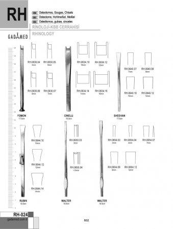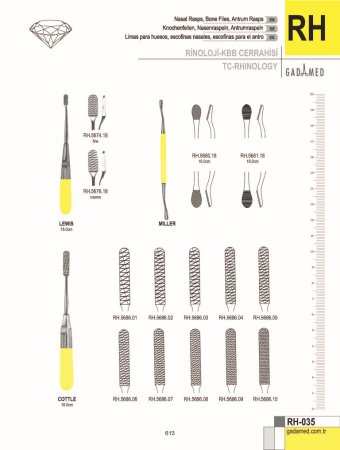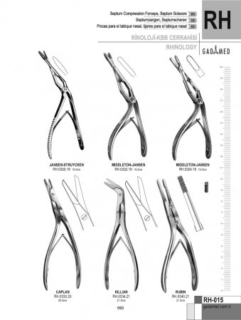 RH.0010.00 8681091066742 Vacher Nazal Spekulum RH.0014.01 8681091066759 Voltolini Nazal Spekulum Şek.1 RH.0014.02 8681091066766 Voltolini Nazal Spekulum Şek.2 RH.0014.03 8681091066773 Voltolini Nazal Spekulum Şek.3 RH.0020.00 8681091066780 Thudichum Nazal Spekulum (Goldsmith) set/7 RH.0020.01 8681091066797 Thudichum Nazal Spekulum (Goldsmith) Şek.1 RH.0020.02 8681091066803 Thudichum Nazal Spekulum (Goldsmith) Şek.2 RH.0020.03 8681091066810 Thudichum Nazal Spekulum (Goldsmith) Şek.3 RH.0020.04 8681091066827 Thudichum Nazal Spekulum (Goldsmith) Şek.4 RH.0020.05 8681091066834 Thudichum Nazal Spekulum (Goldsmith) Şek.5 RH.0020.06 8681091066841 Thudichum Nazal Spekulum (Goldsmith) Şek.6 RH.0020.07 8681091066858 Thudichum Nazal Spekulum (Goldsmith) Şek.7 RH.0024.00 8681091066865 St. Clair Thomson Nazal Spekulum set/3 RH.0024.01 8681091066872 St. Clair Thomson Nazal Spekulum 38mm, Şek.1 RH.0024.02 8681091066889 St. Clair Thomson Nazal Spekulum 51mm, Şek.2 RH.0024.03 8681091066896 St. Clair Thomson Nazal Spekulum 76mm, Şek.3 RH.0030.00 8681091066902 Hartmann Halle Spekulum set/3, Şek.1, 2 ve 3 RH.0030.01 8681091066919 Hartmann Halle Spekulum Şek.1 RH.0030.02 8681091066926 Hartmann Halle Spekulum Şek.2 (Pilcher) RH.0030.03 8681091066933 Hartmann Halle Spekulum Şek.3 RH.0036.14 8681091066940 Schwarz Nazal Spekulum 14cm RH.0040.01 8681091066957 Vienna Nazal Spekulum Infant 14.5cm RH.0040.02 8681091066964 Vienna Nazal Spekulum Çocuk 14.5cm RH.0040.03 8681091066971 Vienna Nazal Spekulum Yetişkin 14.5cm RH.0040.04 8681091066988 Vienna Nazal Spekulum hafif 14.5cm RH.0044.14 8681091066995 Mod. Vien Nazal Spekulumlar 14.5cm RH.0048.13 8681091067008 Mod. Martin Nazal Spekulumlar düz 13cm RH.0049.13 8681091067015 Mod. Martin Nazal Spekulum açılı 13cm RH.0052.01 8681091067022 Tieck Halle Nazal Spekulum 13.5cm Şek.1 RH.0052.02 8681091067039 Tieck Halle Nazal Spekulum 13.5cm Şek.2 RH.0056.13 8681091067046 Tieck-Halle Nazal Spekulum açılı 13.5cm RH.0060.35 8681091067053 Killian Nazal Spekulum S/J 35mm RH.0060.50 8681091067060 Killian Nazal Spekulum S/J 50mm RH.0060.75 8681091067077 Killian Nazal Spekulum S/J 75mm RH.0060.90 8681091067084 Killian Nazal Spekulum S/J 90mm RH.0062.35 8681091067091 Killian Nazal Spekulum S/J yandan vidalı 35mm RH.0062.50 8681091067107 Killian Nazal Spekulum S/J yandan vidalı 50mm RH.0062.75 8681091067114 Killian Nazal Spekulum S/J yandan vidalı 75mm RH.0062.90 8681091067121 Killian Nazal Spekulum S/J yandan vidalı 90mm RH.0070.03 8681090942269 Snare tel bobin 0.3mm 10 metre RH.0070.04 8681090943051 Snare tel bobin 0.4mm 10 metre RH.0070.35 8681091067138 Cottle Nazal Spekulum 35mm 14cm RH.0070.50 8681091067145 Cottle Nazal Spekulum 50mm 14cm RH.0070.75 8681091067152 Cottle Nazal Spekulum 75mm 14cm RH.0070.90 8681091067169 Cottle Nazal Spekulum 90mm 14cm RH.0072.35 8681091067176 Cottle Nazal Spekulum yandan vidalı 35mm 14cm RH.0072.50 8681091067183 Cottle Nazal Spekulum yandan vidalı 50mm 14cm RH.0072.75 8681091067190 Cottle Nazal Spekulum yandan vidalı 75mm 14cm RH.0072.90 8681091067206 Cottle Nazal Spekulum yandan vidalı 90mm 14cm RH.0074.02 8681090943846 Tonsil teli 0,2mm RH.0074.03 8681090944638 Tonsil teli 0,3mm RH.0076.35 8681091067213 Cottle Nazal Spekulum siyah 35mm, 14cm RH.0076.50 8681091067220 Cottle Nazal Spekulum siyah 50mm, 14cm RH.0076.75 8681091067237 Cottle Nazal Spekulum siyah 75mm, 14cm RH.0076.90 8681091067244 Cottle Nazal Spekulum siyah 90mm, 14cm RH.0080.19 8681091067251 Yankauer Postnazal Spekulum 19cm RH.0100.26 8681091067268 KRAUSE NAZAL KAPAN, AÇILI 26CM RH.0104.26 8681091067275 KRAUSE VOSS NAZAL KAPAN (KESMEZ) 26CM RH.0110.00 8681091067282 KRAUSE NAZAL KAPAN RH.0114.01 8681091067299 GLEGG NAZAL KAPAN (KESER) RH.0114.02 8681091067305 GLEGG NAZAL KAPAN (KESMEZ) RH.0120.17 8681091067312 KILLIAN NAZAL POLİP FORSEPSİ 17CM RH.0124.18 8681091067329 LITTAUER NAZAL POLİP FORSEPSİ 18 CM RH.0130.20 8681091067336 HARTMANN NAZAL POLİP FORSEPSİ 20 CM RH.0134.12 8681091067343 QUIRE YABANCI CİSİM KANCASI (MANİVELA) 12CM RH.0140.18 8681091067350 CARIG NAZAL KESME FORSEPSİ 18CM RH.0144.01 8681091067367 NAZAL KESME FORSEPSİ SOL 18CM RH.0144.02 8681091067374 NAZAL KESME FORSEPSİ SAĞ 18CM RH.0150.18 8681091067381 KNIGHT NAZAL KESME FORSEPSİ 18.5CM RH.0154.01 8681091067398 HEYMANN NAZAL KESME FORSEPSİ 18CM RH.0154.02 8681091067404 HEYMANN NAZAL KESME FORSEPSİ 18CM RH.0154.03 8681091067411 HEYMANN NAZAL KESME FORSEPSİ 18CM RH.0160.01 8681091067428 LUC/BRUENINGS NAZAL TÜRBİNAT FORSEPSİ ŞEK.1 19CM RH.0160.02 8681091067435 LUC/BRUENINGS NAZAL TÜRBİNAT FORSEPSİ ŞEK.2 19CM RH.0160.03 8681091067442 LUC/BRUENINGS NAZAL TÜRBİNAT FORSEPSİ ŞEK.3 19CM RH.0160.04 8681091067459 LUC/BRUENINGS NAZAL TÜRBİNAT FORSEPSİ ŞEK.4 19CM RH.0164.01 8681091067466 LUC NAZAL KESME FORSEPSİ ŞEK.1, 19CM RH.0164.02 8681091067473 LUC NAZAL KESME FORSEPSİ ŞEK.2, 19CM RH.0170.01 8681091067480 LUC NAZAL KESME FORSEPSİ ŞEK.1, 19CM RH.0170.02 8681091067497 LUC NAZAL KESME FORSEPSİ ŞEK.2, 19CM RH.0174.01 8681091067503 LUC NAZAL KESME FORSEPSİ ŞEK.1, 20CM RH.0174.02 8681091067510 LUC NAZAL KESME FORSEPSİ ŞEK.2, 20CM RH.0174.03 8681091067527 LUC NAZAL KESME FORSEPSİ ŞEK.3, 20CM RH.0180.15 8681091067534 TROELTSCH NAZAL FORSEPS, AÇILI 15CM RH.0182.18 8681091067541 TROELTSCH NAZAL FORSEPS, AÇILI 18CM RH.0186.20 8681091067558 GRUENWALD JANSEN NAZAL FORSEPS BAYONETİ 20CM RH.0190.14 8681091067565 NOYES ALLIGATOR FORSEPS OLUKLU ÇENE 14.5CM RH.0192.14 8681091067572 NOYES ALLIGATOR FORSEPSİ 14.5CM RH.0196.20 8681091067589 WESTMACOTT NAZAL SARGI FORSEPSİ 20CM RH.0200.20 8681091067596 LUBET BARBON NAZAL FORSEPSİ 20CM RH.0204.16 8681091067602 HARTMANN NAZAL POLİP FORSEPSİ 16CM RH.0210.18 8681091067619 HEYMANN KNİGHT NAZAL FORSEPSİ 18CM RH.0214.20 8681091067626 TİLLEY HENCKLE PANÇ FORSEPSİ 5.5MM, 20CM RH.0220.15 8681091067633 JATHO RİNOLOJİ FORSEPSİ ŞAFTI 150MM, 24CM RH.0222.12 8681091067640 WATSON WİLLİAMS ETMOİD FORSEPSİ 19 C