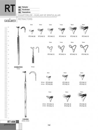 RT.0010.00 8681091024377 Ekartör, Farabeuf model 2'li set 12.0 cm RT.0010.01 8681091024384 Ekartör, Farabeuf model fig.1 12.0 cm RT.0010.02 8681091024391 Ekartör, Farabeuf model fig.2 12.0 cm RT.0012.00 8681091024407 Ekartör, Farabeuf model 2'li set 15.0 cm RT.0012.01 8681091024414 Ekartör, Farabeuf model fig.1 15.0 cm RT.0012.02 8681091024421 Ekartör, Farabeuf model fig.2 15.0 cm RT.0014.00 8681091024438 Ekartör, Mayo-collin model 2'li set 15.0 cm RT.0014.01 8681091024445 Ekartör, Mayo-collin model fig.1 15.0 cm RT.0014.02 8681091024452 Ekartör, Mayo-collin model fig.2 15.0 cm RT.0018.00 8681091024469 Ekartör, Parker-langenbeck model 2'li set 21.0 cm RT.0018.01 8681091024476 Ekartör, Parker-langenbeck model fig.1 21.0 cm RT.0018.02 8681091024483 Ekartör, Parker-langenbeck model fig.2 21.0 cm RT.0022.00 8681091024490 Ekartör, Mathieu model 2'li set 20.0 cm RT.0022.01 8681091024506 Ekartör, Mathieu model fig.1 20.0 cm RT.0022.02 8681091024513 Ekartör, Mathieu model fig.2 20.0 cm RT.0026.11 8681091024520 Ekartör, Crile model 11.0 cm RT.0030.00 8681091024537 Ekartör, Parker model 2'li set 13.5 cm RT.0030.01 8681091024544 Ekartör, Parker model fig.1 13.5 cm RT.0030.02 8681091024551 Ekartör, Parker model fig.2 13.5 cm RT.0034.00 8681091024568 Ekartör, Parker model 2'li set 18.0 cm RT.0034.01 8681091024575 Ekartör, Parker model fig.1 18.0 cm RT.0034.02 8681091024582 Ekartör, Parker model fig.2 18.0 cm RT.0038.00 8681091024599 Ekartör, Parker-mott model 2'li set 16.0 cm RT.0038.01 8681091024605 Ekartör, Parker-mott model fig.1 16.0 cm RT.0038.02 8681091024612 Ekartör, Parker model fig.2 16.0 cm RT.0042.14 8681091024629 Ekartör, Mini roux model 14.0 cm RT.0046.13 8681091024636 Ekartör, Baby-Roux model 13.0 cm RT.0050.00 8681091024643 Ekartör, Roux model 3'lü set fig.1&fig.3 RT.0050.01 8681091024650 Ekartör, Roux model fig.1 14.0 cm RT.0050.02 8681091024667 Ekartör, Roux model fig.2 15.0 cm RT.0050.03 8681091024674 Ekartör, Roux model fig.3 17.0 cm RT.0050.04 8681091024681 Ekartör, Roux model fig.4 18.0 cm RT.0054.00 8681091024698 Ekartör, Roux-Magnus model 3'lü set fig.1&fig.3 RT.0054.14 8681091024704 Ekartör, Roux-Magnus model fig.1 14.0 cm RT.0054.15 8681091024711 Ekartör, Roux-Magnus model fig.2 15.0 cm RT.0054.17 8681091024728 Ekartör, Roux-Magnus model fig.3 17.0 cm RT.0058.19 8681091024735 Ekartör, Goelet model 19.0 cm RT.0060.14 8681091024742 Ekartör, Collin-Hartmann model 14.0 cm RT.0060.16 8681091024759 Ekartör, Collin-Hartmann model 16.0 cm RT.0066.16 8681091024766 Ekartör, Canny-Ryall model 16mm 19.0 cm RT.0066.20 8681091024773 Ekartör, Canny-Ryall model 20mm 19.0 cm RT.0066.25 8681091024780 Ekartör, Canny-Ryall model 25mm 20.0 cm RT.0070.20 8681091024797 Ekartör, Czerny model 32x22mm 20.0 cm RT.0080.01 8681091024803 Ekartör-huk keskin, 1pr 16.0 cm RT.0080.02 8681091024810 Ekartör-huk keskin, 2pr 16.0 cm RT.0080.03 8681091024827 Ekartör-huk keskin, 3pr 16.0 cm RT.0080.04 8681091024834 Ekartör-huk keskin, 4pr 16.0 cm RT.0082.01 8681091024841 Ekartör-huk künt, 1pr 16.0 cm RT.0082.02 8681091024858 Ekartör-huk künt, 2pr 16.0 cm RT.0082.03 8681091024865 Ekartör-huk künt, 3pr 16.0 cm RT.0082.04 8681091024872 Ekartör-huk künt, 4pr 16.0 cm RT.0084.01 8681091024889 Ekartör-huk yarı keskin, 1pr 16.0 cm RT.0084.02 8681091024896 Ekartör-huk yarı keskin, 2pr 16.0 cm RT.0084.03 8681091024902 Ekartör-huk yarı keskin, 3pr 16.0 cm RT.0084.04 8681091024919 Ekartör-huk yarı keskin, 4pr 16.0 cm RT.0090.02 8681091024926 Ekartör- huk esneyebilen keskin, 2pr 16.0 cm RT.0090.03 8681091024933 Ekartör- huk esneyebilen keskin, 3pr 16.0 cm RT.0090.04 8681091024940 Ekartör- huk esneyebilen keskin, 4pr 16.0 cm RT.0092.02 8681091024957 Ekartör- huk esneyebilen künt, 2pr 16.0 cm RT.0092.03 8681091024964 Ekartör- huk esneyebilen künt, 3pr 16.0 cm RT.0092.04 8681091024971 Ekartör- huk esneyebilen künt, 4pr 16.0 cm RT.0094.02 8681091024988 Ekartör- huk esneyebilen künt, flexible mode 2pr 16.0 cm RT.0094.03 8681091024995 Ekartör- huk esneyebilen künt, flexible mode 3pr 16.0 cm RT.0094.04 8681091025008 Ekartör- huk esneyebilen künt ,flexible mode 4pr 16.0 cm RT.0096.02 8681091025015 Ekartör- huk esneyebilen künt, flexible model 2pr 16.0 cm RT.0096.03 8681091025022 Ekartör- huk esneyebilen künt, flexible model 3pr 16.0 cm RT.0096.04 8681091025039 Ekartör- huk esneyebilen künt, flexible model 4pr 16.0 cm RT.0100.04 8681091025046 Ekartör-huk keskin, 16.0 cm RT.0102.04 8681091025053 Ekartör-huk künt, 16.0 cm RT.0110.01 8681091025060 Eakrtör-huk keskin, trakeal 1pr 16.0 cm RT.0110.02 8681091025077 Eakrtör-huk keskin, trakeal 2pr 16.0 cm RT.0110.03 8681091025084 Eakrtör-huk keskin, trakeal 3pr 16.0 cm RT.0110.04 8681091025091 Eakrtör-huk keskin, trakeal 4pr 16.0 cm RT.0112.01 8681091025107 Eakrtör-huk künt, trakeal 1pr 16.0 cm RT.0112.02 8681091025114 Eakrtör-huk künt, trakeal 2pr 16.0 cm RT.0112.03 8681091025121 Eakrtör-huk künt, trakeal 3pr 16.0 cm RT.0112.04 8681091025138 Eakrtör-huk künt, trakeal 4pr 16.0 cm RT.0116.01 8681091025145 Ekartör, Guthrie model küçük 2pr 16.0 cm RT.0116.02 8681091025152 Ekartör, Guthrie model büyük 2pr 16.0 cm RT.0120.16 8681091025169 Eakrtör-huk, O'connor model 16.0 cm RT.0124.01 8681091025176 Ekartör-huk keskin, Graefe model 16.0 cm RT.0124.02 8681091025183 Ekartör-huk künt, Graefe model 16.0 cm RT.0130.01 8681091025190 Huk tekli, fig.1 16.0 cm RT.0130.02 8681091025206 Huk tekli, fig.2 16.0 cm RT.0130.03 8681091025213 Huk tekli, fig.3 16.0 cm RT.0130.04 8681091025220 Huk tekli, fig.4 16.0 cm RT.0140.08 8681091025237 Ekartör, Desmarres model 8mm 16.0 cm RT.0140.10 8681091025244 Ekartör, Desmarres model 10mm 16.0 cm RT.0140.12 8681091025251 Ekartör, Desmarres model 12mm 16.0 cm RT.0140.14 8681091025268 Ekartör, Desmarres model 14mm 16.0 cm RT.0140.16 8681091025275 Ekartör, Desmarres model 16mm 16.0 cm RT.0140.18 8681091025282 Ekartör, Desmarres model 18mm 16.0 cm RT.0142.12 86810