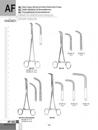 AF.0010.03 8681091018888 Buldog klemp düz, Dieffenbach model 3.5 cm AF.0010.05 8681091018895 Buldog klemp düz, Dieffenbach model 5.5 cm AF.0010.06 8681091018901 Buldog klemp düz, Dieffenbach model 6.0 cm AF.0011.03 8681091018918 Buldog klemp eğri, Dieffenbach model 3.5 cm AF.0011.05 8681091018925 Buldog klemp eğri, Dieffenbach model 5.5 cm AF.0011.06 8681091018932 Buldog klemp eğri, Dieffenbach model 6.0 cm AF.0016.05 8681091018949 Buldog klemp düz, Johns-Hopkins model 5.0 cm AF.0016.06 8681091018956 Buldog klemp düz, Johns-Hopkins model 6.5 cm AF.0016.07 8681091018963 Buldog klemp düz, Johns-Hopkins model 7.5 cm AF.0017.05 8681091018970 Buldog klemp eğri, Johns-Hopkins model 5.0 cm AF.0017.06 8681091018987 Buldog klemp eğri, Johns-Hopkins model 5.0 cm AF.0017.07 8681091018994 Buldog klemp eğri, Johns-Hopkins model 5.0 cm AF.0020.08 8681091019007 Buldog klemp düz, diethrich model 8mm, 5.0 cm AF.0020.12 8681091019014 Buldog klemp düz, diethrich model 12mm, 5.0 cm AF.0020.20 8681091019021 Buldog klemp düz, diethrich model 20mm, 6.0 cm AF.0021.08 8681091019038 Buldog klemp açılı, diethrich model 8mm, 5.0 cm AF.0021.12 8681091019045 Buldog klemp açılı, diethrich model 12mm, 5.0 cm AF.0021.20 8681091019052 Buldog klemp açılı, diethrich model 20mm, 6.0 cm AF.0026.14 8681091019069 Vessel klip W/lock 14 cm AF.0028.18 8681091019076 Vessel klip W/lock 18 cm AF.0030.10 8681091019083 Hemostatik klemp düz, Hartmann model 10.0 cm AF.0031.10 8681091019090 Hemostatik klemp eğri, Hartmann model 10.0 cm AF.0032.10 8681091019106 Hemostatik klemp düz, Hartmann model dişli 1x2 10.0 cm AF.0033.10 8681091019113 Hemostatik klemp eğri, Hartmann model dişli 1x2 10.0 cm AF.0040.08 8681091019120 Hemostatik klemp düz, Carrel model 8.5 cm AF.0044.08 8681091019137 Hemostatik klemp düz, Terrier model dişli 1x2 8.5 cm AF.0048.09 8681091019144 Hemostatik klemp düz, Terrier model dişli 1x2 9.0 cm AF.0049.09 8681091019151 Hemostatik klemp eğri, Terrier model dişli 1x2 9.0 cm AF.0060.12 8681091019168 Hemostatik klemp düz, Halsted-Mosquito model 12.5 cm AF.0060.14 8681091019175 Hemostatik klemp düz, Halsted-Mosquito model 14.0 cm AF.0061.12 8681091019182 Hemostatik klemp eğri, Halsted-Mosquito model 12.5 cm AF.0061.14 8681091019199 Hemostatik klemp eğri, Halsted-Mosquito model 14.0 cm AF.0062.12 8681091019205 Hemostatik klemp düz, Halsted-Mosquito model dişli 1x2 12.5 cm AF.0062.14 8681091019212 Hemostatik klemp düz, Halsted-Mosquito model dişli 1x2 14.0 cm AF.0063.12 8681091019229 Hemostatik klemp eğri, Halsted-Mosquito model dişli 1x2 12.5 cm AF.0063.14 8681091019236 Hemostatik klemp eğri, Halsted-Mosquito model dişli 1x2 14.0 cm AF.0070.10 8681091019243 Hemostatik klemp düz, Mikro Mosquito model 10.0 cm AF.0070.12 8681091019250 Hemostatik klemp düz, Mikro Mosquito model 12.0 cm AF.0070.14 8681091019267 Hemostatik klemp düz, Mikro Mosquito model 14.0 cm AF.0071.10 8681091019274 Hemostatik klemp eğri, Mikro Mosquito model 10.0 cm AF.0071.12 8681091019281 Hemostatik klemp eğri, Mikro Mosquito model 12.0 cm AF.0071.14 8681091019298 Hemostatik klemp eğri, Mikro Mosquito model 14.0 cm AF.0072.10 8681091019304 Hemostatik klemp düz, Mikro Mosquito model dişli 1x2 10.0 cm AF.0072.12 8681091019311 Hemostatik klemp düz, Mikro Mosquito model dişli 1x2 12.0 cm AF.0072.14 8681091019328 Hemostatik klemp düz, Mikro Mosquito model dişli 1x2 14.0 cm AF.0073.10 8681091019335 Hemostatik klemp eğri, Mikro Mosquito model dişli 1x2 10.0 cm AF.0073.12 8681091019342 Hemostatik klemp eğri, Mikro Mosquito model dişli 1x2 12.0 cm AF.0073.14 8681091019359 Hemostatik klemp eğri, Mikro Mosquito model dişli 1x2 14.0 cm AF.0080.16 8681091019366 Hemostatik klemp düz, Halsted-Mosquito model 16.0 cm AF.0080.18 8681091019373 Hemostatik klemp düz, Halsted-Mosquito model 18.0 cm AF.0080.21 8681091019380 Hemostatik klemp düz, Halsted-Mosquito model 21.0 cm AF.0081.16 8681091019397 Hemostatik klemp eğri, Halsted-Mosquito model 16.0 cm AF.0081.18 8681091019403 Hemostatik klemp eğri, Halsted-Mosquito model 18.0 cm AF.0081.21 8681091019410 Hemostatik klemp eğri, Halsted-Mosquito model 21.0 cm AF.0082.16 8681091019427 Hemostatik klemp düz, Halsted-Mosquito model dişli 1x2 16.0 cm AF.0082.18 8681091019434 Hemostatik klemp düz, Halsted-Mosquito model dişli 1x2 18.0 cm AF.0082.21 8681091019441 Hemostatik klemp düz, Halsted-Mosquito model dişli 1x2 21.0 cm AF.0083.16 8681091019458 Hemostatik klemp eğri, Halsted-Mosquito model dişli 1x2 16.0 cm AF.0083.18 8681091019465 Hemostatik klemp eğri, Halsted-Mosquito model dişli 1x2 18.0 cm AF.0083.21 8681091019472 Hemostatik klemp eğri, Halsted-Mosquito model dişli 1x2 21.0 cm AF.0090.14 8681091019489 Hemostatik klemp düz, Kelly model 14.0 cm AF.0091.14 8681091019496 Hemostatik klemp eğri, Kelly model 14.0 cm AF.0094.14 8681091019502 Hemostatik klemp düz, Crile model 14.0 cm AF.0095.14 8681091019519 Hemostatik klemp eğri, Crile model 14.0 cm AF.0096.14 8681091019526 Hemostatik klemp düz, Crile model dişli 1x2 14.0 cm AF.0097.14 8681091019533 Hemostatik klemp eğri, Crile model dişli 1x2 14.0 cm AF.0100.16 8681091019540 Hemostatik klemp düz, Rankin-Kelly model 16.0 cm AF.0101.16 8681091019557 Hemostatik klemp eğri, Rankin-Kelly model 16.0 cm AF.0104.16 8681091019564 Hemostatik klemp düz, Rankin-Crile model 16.0 cm AF.0105.16 8681091019571 Hemostatik klemp eğri, Rankin-Crile model 16.0 cm AF.0106.16 8681091019588 Hemostatik klemp düz, Crile-Rankin model 16.0 cm AF.0107.16 8681091019595 Hemostatik klemp eğri, Crile-Rankin model 16.0 cm AF.0110.14 8681091019601 Hemostatik klemp düz, Crile-Delicate model 14.0 cm AF.0111.14 8681091019618 Hemostatik klemp eğri, Crile-Delicate model 14.0 cm AF.0116.14 8681091019625 Hemostatik klemp düz, Crile-Delicate model dişli 1x2 14.0 cm AF.0117.14 8681091019632 Hemostatik klemp eğri, Crile-Delicate model dişli 1x2 14.0 cm AF.0120.14 8681091019649 Hemostatik Klemp düz, Coller-Crile model 14.0 cm 